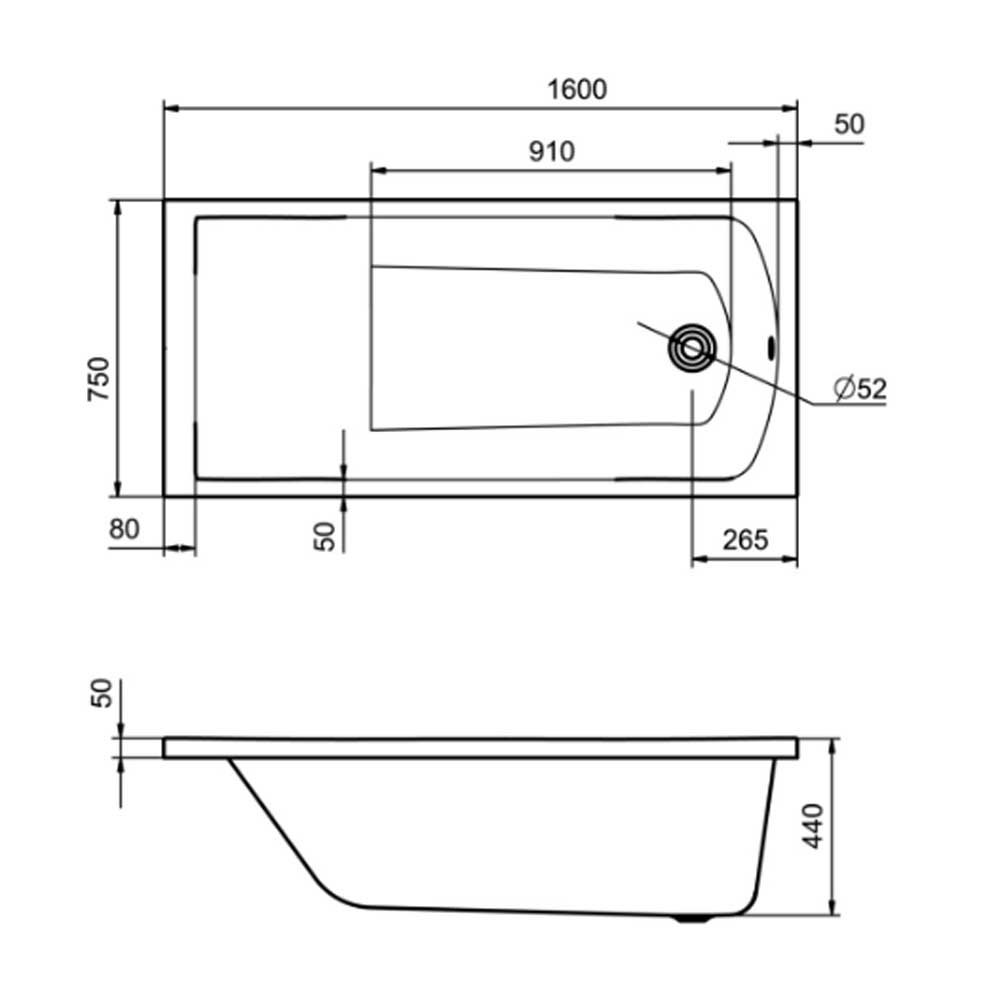 - Ванна изготовлена из 100% акрила с армированием стекловолокном для прочности и жёсткости