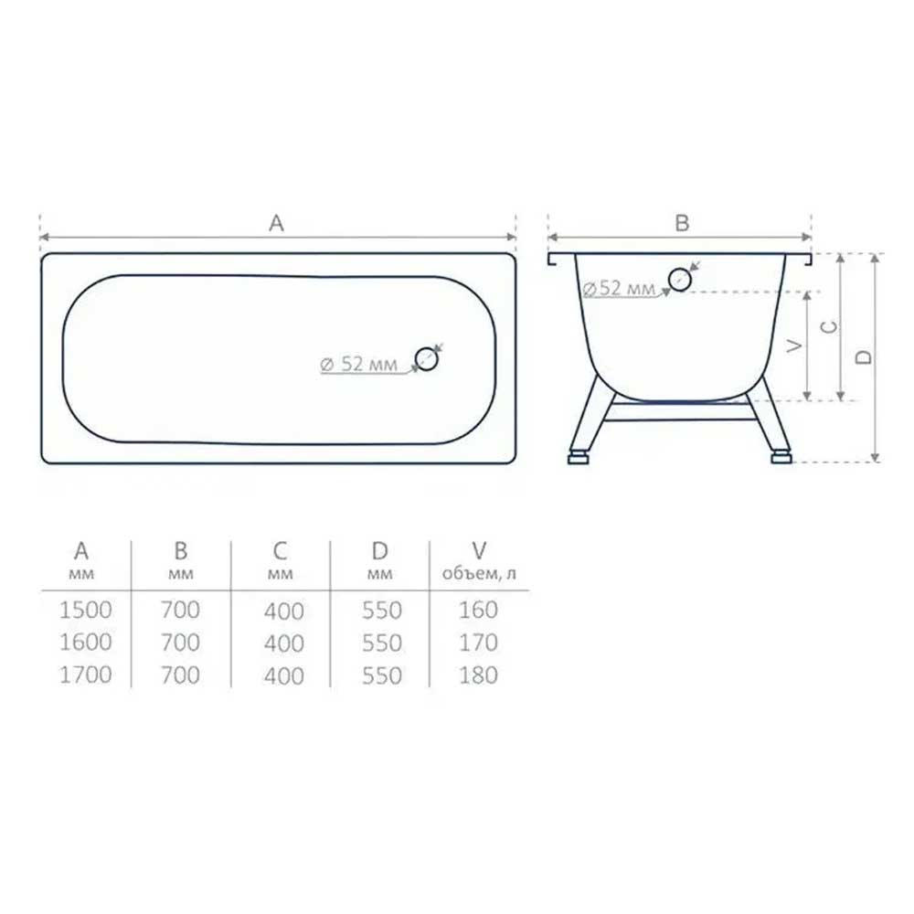- Толщина ванны – 2,7 мм, из них толщина стали – 2 мм, эмали – 0,7 мм