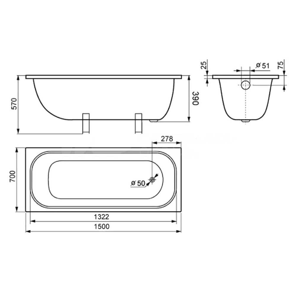 - Гладкая стекловидная эмаль позволяет держать ванну в идеальной чистоте