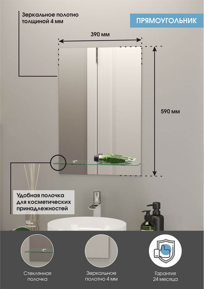 Зеркало, полка, комплект крепления, инструкция