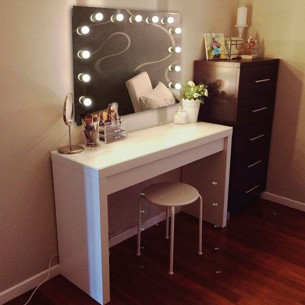 Зеркало из 13 ламп со вставками из цветного стекла Lacobele. Предназначено для косметических салонов, гримерных, а также для домашнего использования, в том числе в помещениях с повышенной влажностью.