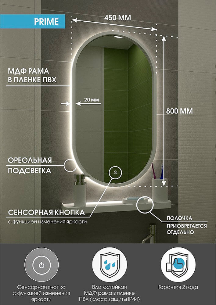 - С ореольной подсветкой, корпус из МДФ, сенсорный выключатель