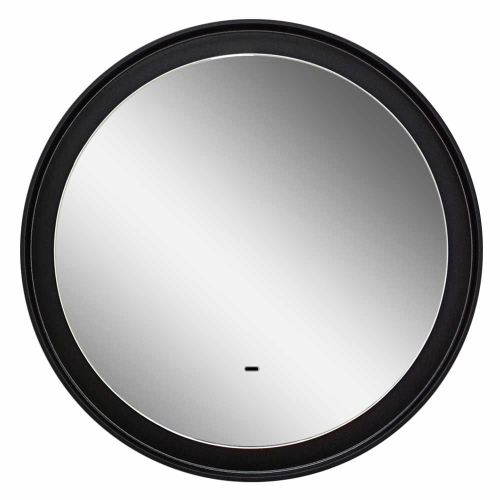 - С ореольной подсветкой, корпус из МДФ в черной пленке ПВХ с эффектом "Soft touch", бесконтактный сенсор с диммером