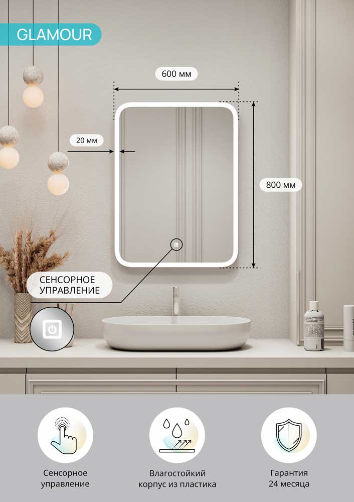 LED-подсветка, сенсорный выключатель |