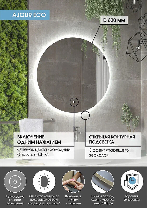 - С ореольной подсветкой, сенсорный выключатель
