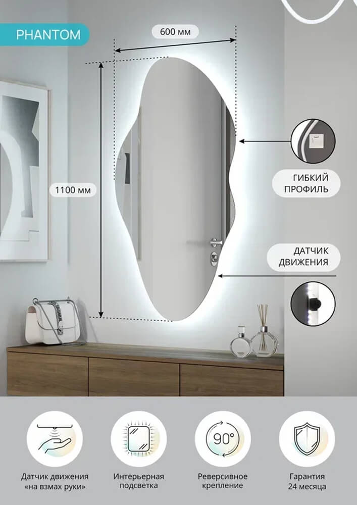 - С ореольной подсветкой, датчик движения, реверсивное крепление