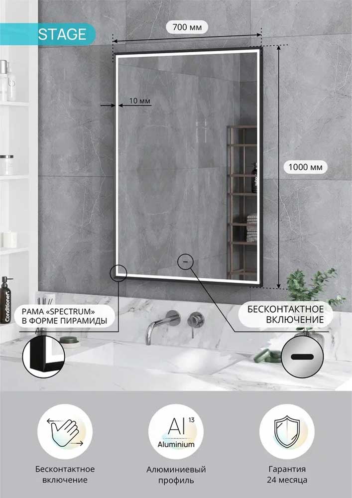 - С подсветкой, алюминиевый профиль, бесконтактный сенсорный выключатель