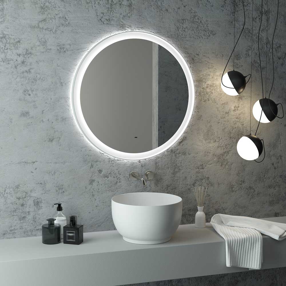 Корпус выполнен из МДФ в белой пленке ПВХ с эффектом "Soft touch", что добавляет ощущение тактильного комфорта и визуальной привлекательности. Подсветку можно активировать простым движением руки на расстоянии до 5 см от бесконтактного сенсора, обеспечивая удобство в использовании.