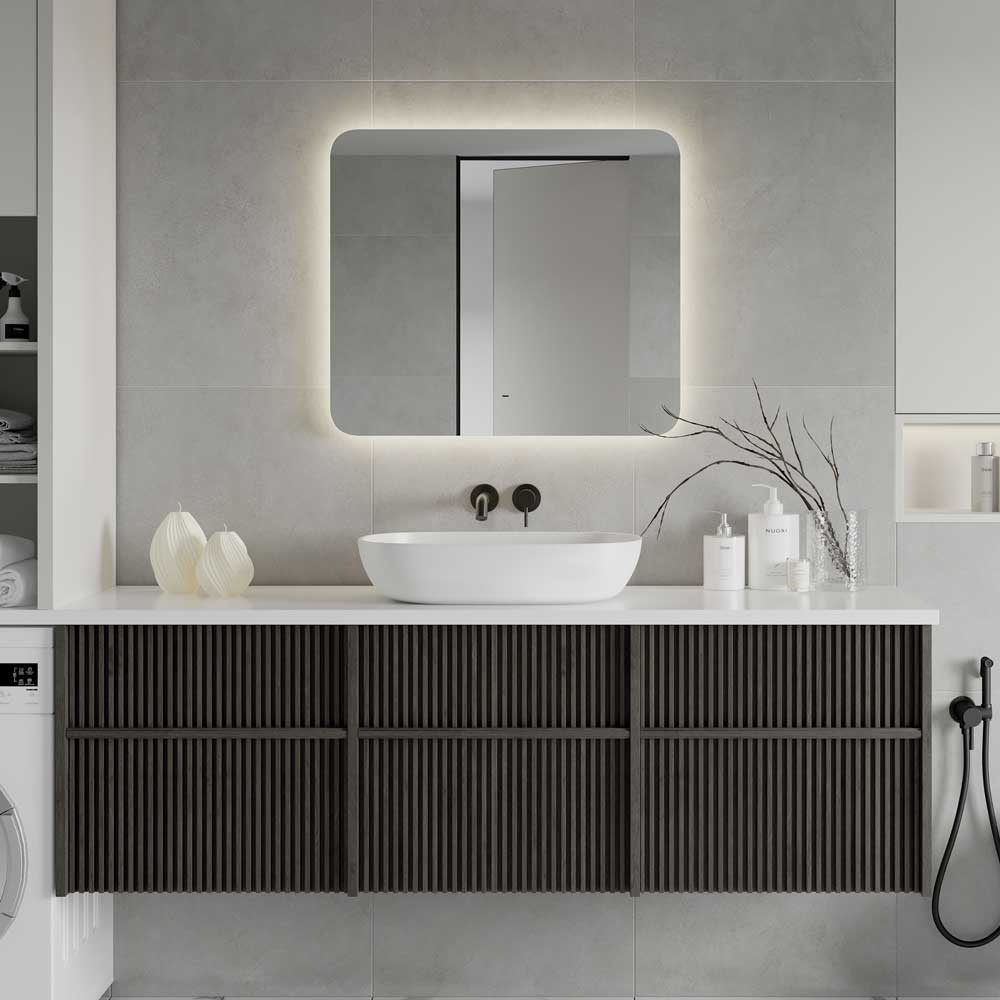 - С ореольной подсветкой и подогревом, бесконтактный сенсор с диммером