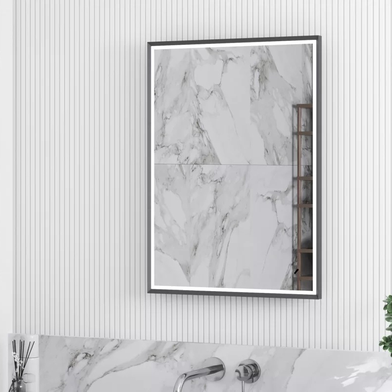 - С фронтальной подсветкой, серый алюминиевый профиль, бесконтактный сенсорный выключатель