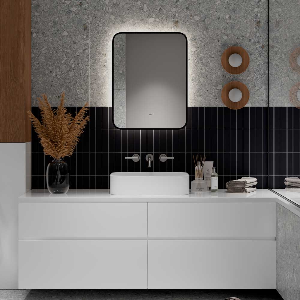Открытая ореольная подсветка не только добавляет освещение в интерьер, но и создает эффект парящего зеркала. Взмах руки на расстоянии до 5 см от бесконтактного сенсора легко активирует подсветку, что делает использование зеркала максимально удобным.